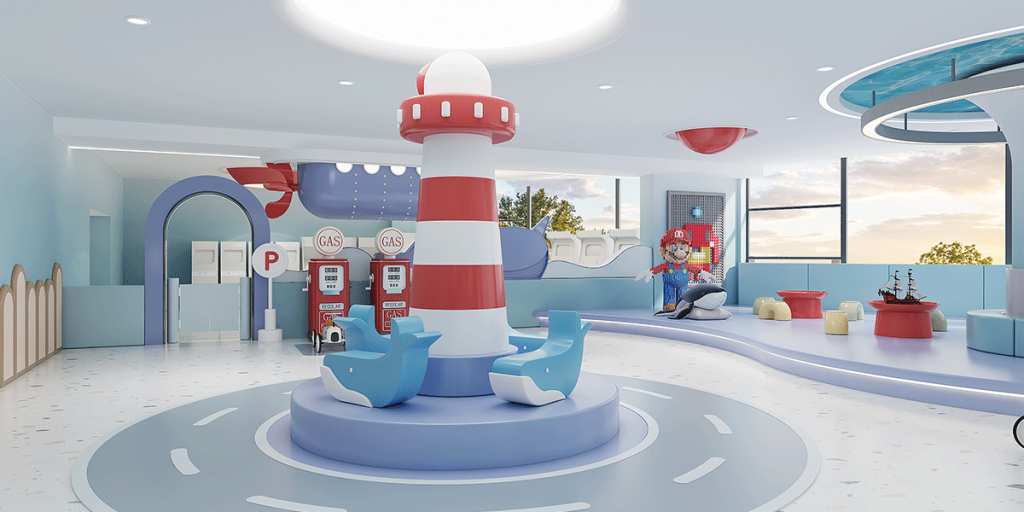 The Whale Adventure Kids Park is an ocean-themed indoor playground inspired by deep-sea exploration stories. This immersive play space transforms the mysterious underwater world into a vibrant adventure zone, where children become little explorers embarking on a magical journey. Together with their whale friend, they dive into a fantasy of ocean discovery and imagination.
