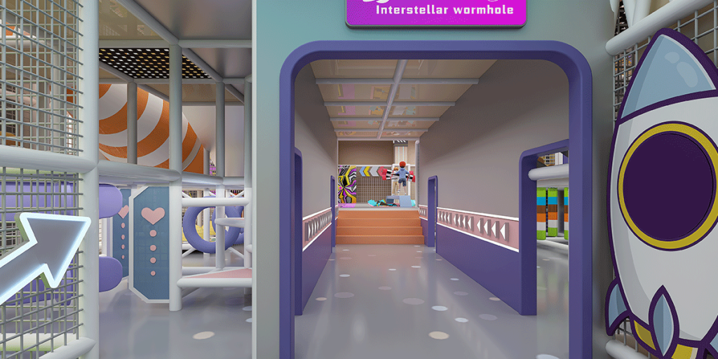 Located on the third floor of the T11 Shopping Mall in Panzhou, Guizhou Province, the T11 Space Exploration Park combines space adventure and parent-child sports as its core concept. It is designed to become one of the city’s most stylish and premium indoor playgrounds. The park is divided into three main areas — the activity zone, trampoline zone, and climbing structure zone — featuring more than 60 interactive play attractions in total.